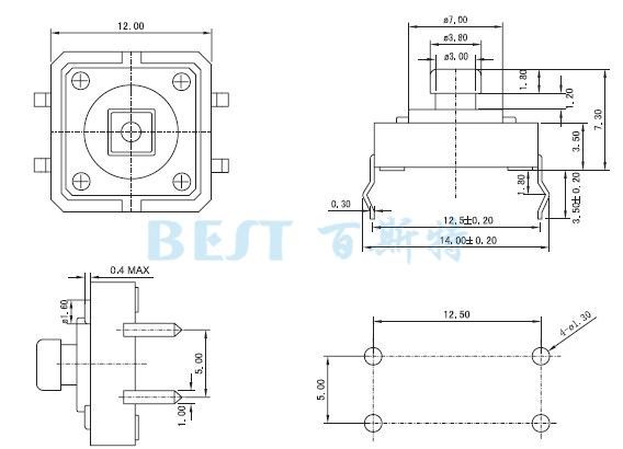 輕觸開關TS-1103C是一款仿歐姆龍開關的産(chǎn)品,它有四個定位柱和四個引腳,它的外觀長寬尺寸爲12x12mm,也被稱呼爲12x12輕觸開關,四腳輕觸開關12x12等。四個定位柱可以精確(què)的定位開關在PCB闆上的位置,防止開關移位,四個引腳可以使輕觸開關固定的更加牢固,開關的驅動力度有3個标準分别爲:250克力,180克力,160克力,如需要其他的力度需要特别定制。此12x12輕觸開關隻有一個高度爲:7.3mm,顔色有黑色和黃色兩種。