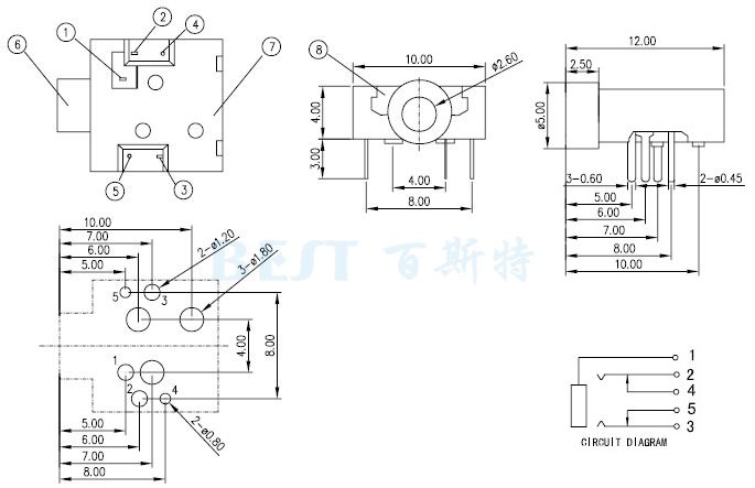 2.5耳機插座PJ-204參考圖紙